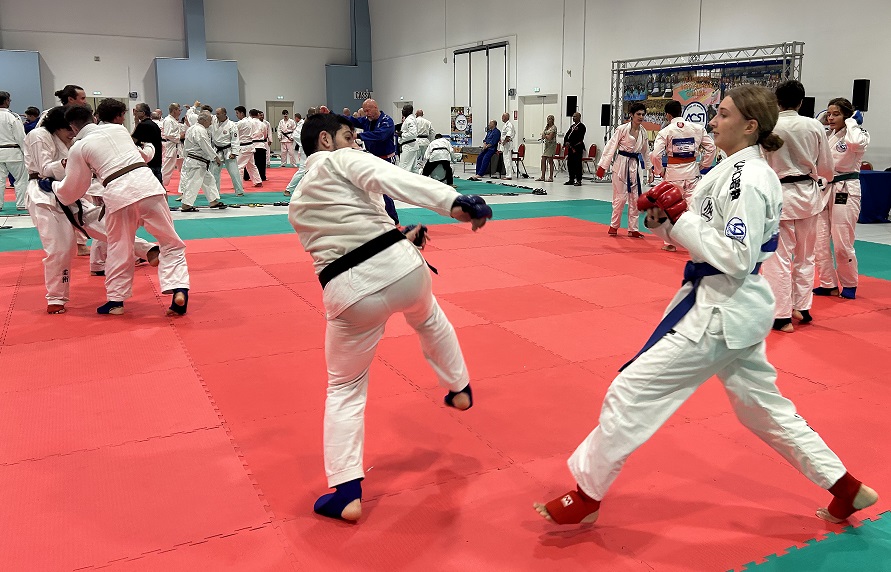 Pala-Dean Martin di Montesilvano gremito di atleti provenienti da ogni parte del mondo (800 circa, oltre ai loro accompagnatori) per il doppio evento internazionale di arti marziali: i campionati europei di Shuai Jiao (antichissima arte marziale cinese) e lo stage internazionale di arti marziali Acsi (Associazione Centri Sportivi Italiani), che ha compreso quindi le varie specialità, ovvero: Aikido, Gatka, Jeet Kune Do, Ju Jitsu, Karate, Katori, Kick Boxing, Lotte tradizionali, Muay Thai, May Boran, Qwan Ki Do, Scherma storica, Tatami Kids. E anche Shuai Jiao, che nell’occasione ha assegnato anche i titoli continentali.