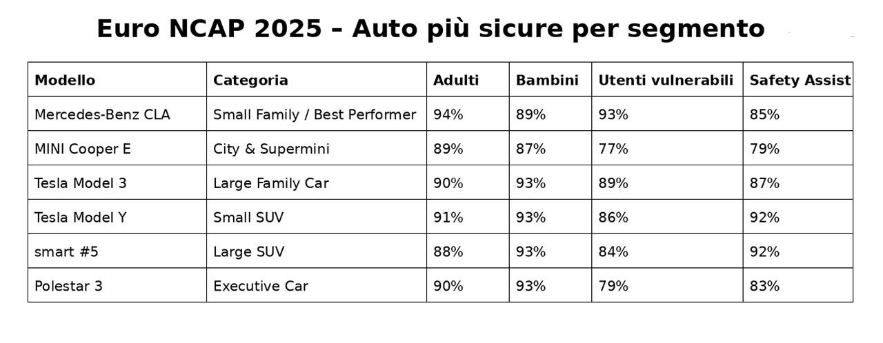 Leggi tutto: https://www.sicurauto.it/news/sistemi-di-sicurezza/auto-piu-sicure-del-2025-la-classifica-di-euro-ncap-per-segmento/