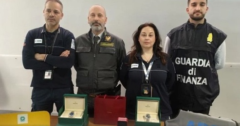 Si trattava di due orologi Rolex, un anello e un bracciale Cartier per un valore complessivo di 42.085 euro, mai dichiarati alla dogana.