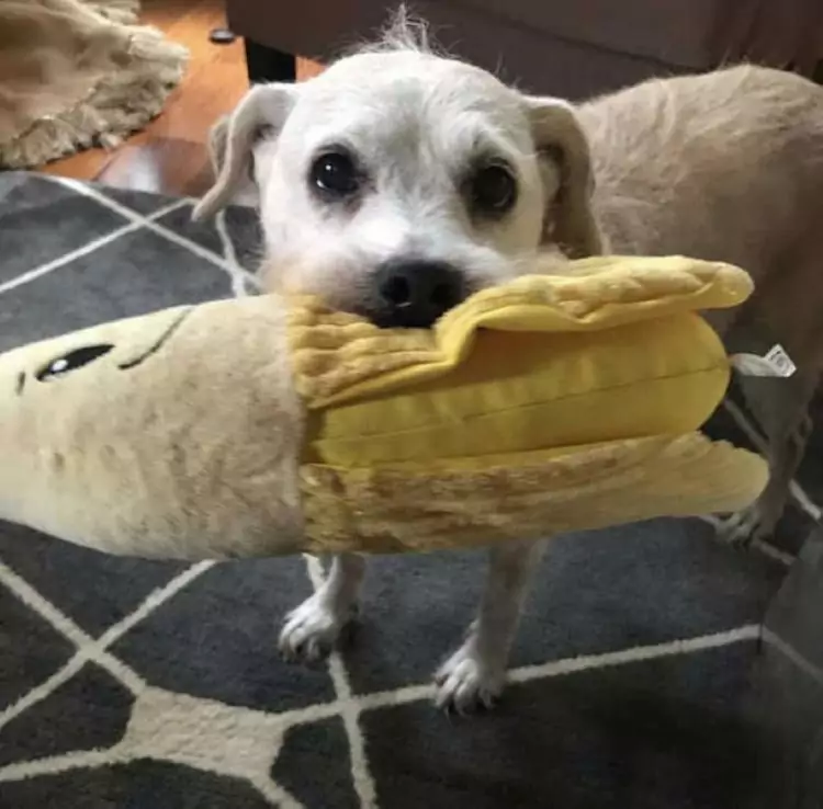 Oltre che alla sua famiglia però, Tessa è legata moltissimo anche a una cosa “non vivente”, ovvero il suo giocattolo di peluche. Tessa e la sua banana giocattolo sono insieme da 5 anni, e per il cagnolino è diventata fondamentale nella sua vita.