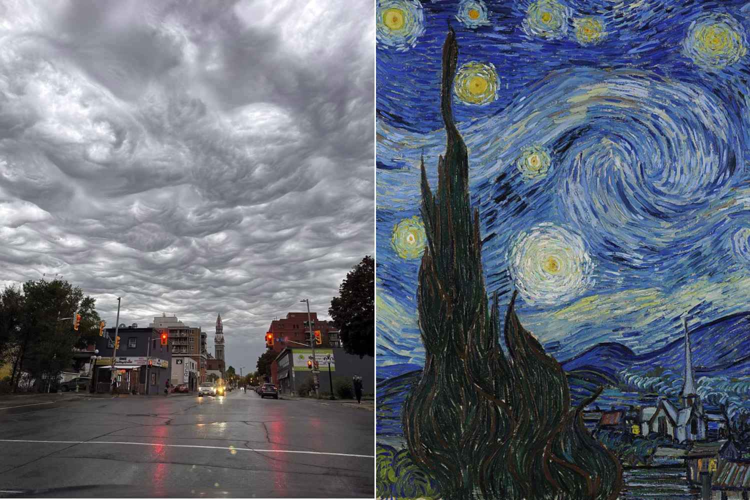 Il cielo mattutino di Ottawa, in Canada, ha regalato ai suoi residenti uno spettacolo naturale sorprendente che ha ricordato a molti un’opera d’arte famosissima e amatissima: la Notte stellata di Vincent Van Gogh. Lo scorso 9 ottobre, infatti, Ann Martin ha condiviso su Facebook delle immagini di una rara formazione di nuvole che sono diventate virali.