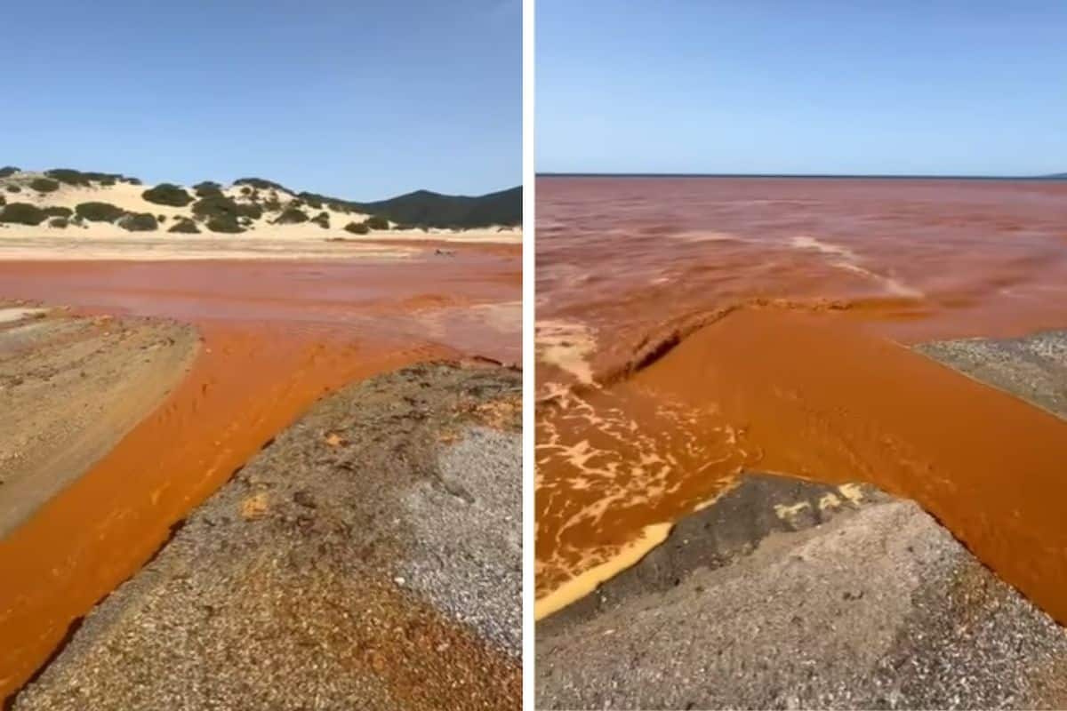 Piscinas è rinomata in tutto il mondo per le sue dune di sabbia che raggiungono altezze fino a 100 metri. Ma ora la bellezza di questo luogo risulta deturpata e il colore dell’acqua di mare si è decisamente trasformato. I video che arrivano dalla zona sono impressionati, si vede infatti un fiume rosso, composto dagli scarti delle miniere abbandonate da decenni, che viaggia indisturbato verso il mare.