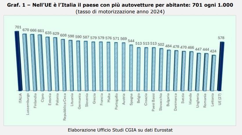 PARCO AUTO RECORD: 701 VETTURE OGNI MILLE ABITANTI