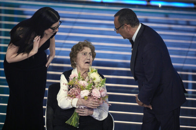 Nonostante la varietà dell’offerta, dall’omaggio giusto e misurato (forse fin troppo misurato) a Pippo Baudo agli abiti sontuosi alle Z non pronunciate di Laura Pausini, dall’ospitata generosa ed esuberante di Tiziano Ferro all’esibizione dei pettorali del Sandokan turco, la star della prima serata sanremese si chiama Gianna Pratesi. La signora è ospite d’onore come rappresentante delle donne che votarono per