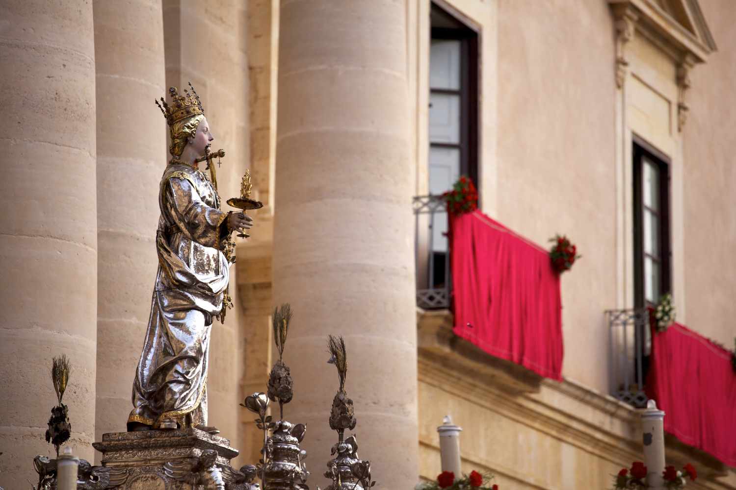 Durante un pellegrinaggio al sepolcro di Sant’Agata, Lucia ha una visione miracolosa. La santa le promette la guarigione di sua madre e le preannuncia un futuro glorioso come patrona di Siracusa. Quando Eutichia guarisce davvero, Lucia compie una scelta rivoluzionaria per l’epoca: rinuncia alle ricchezze e alle nozze, dedicando la sua vita al servizio dei più poveri.
