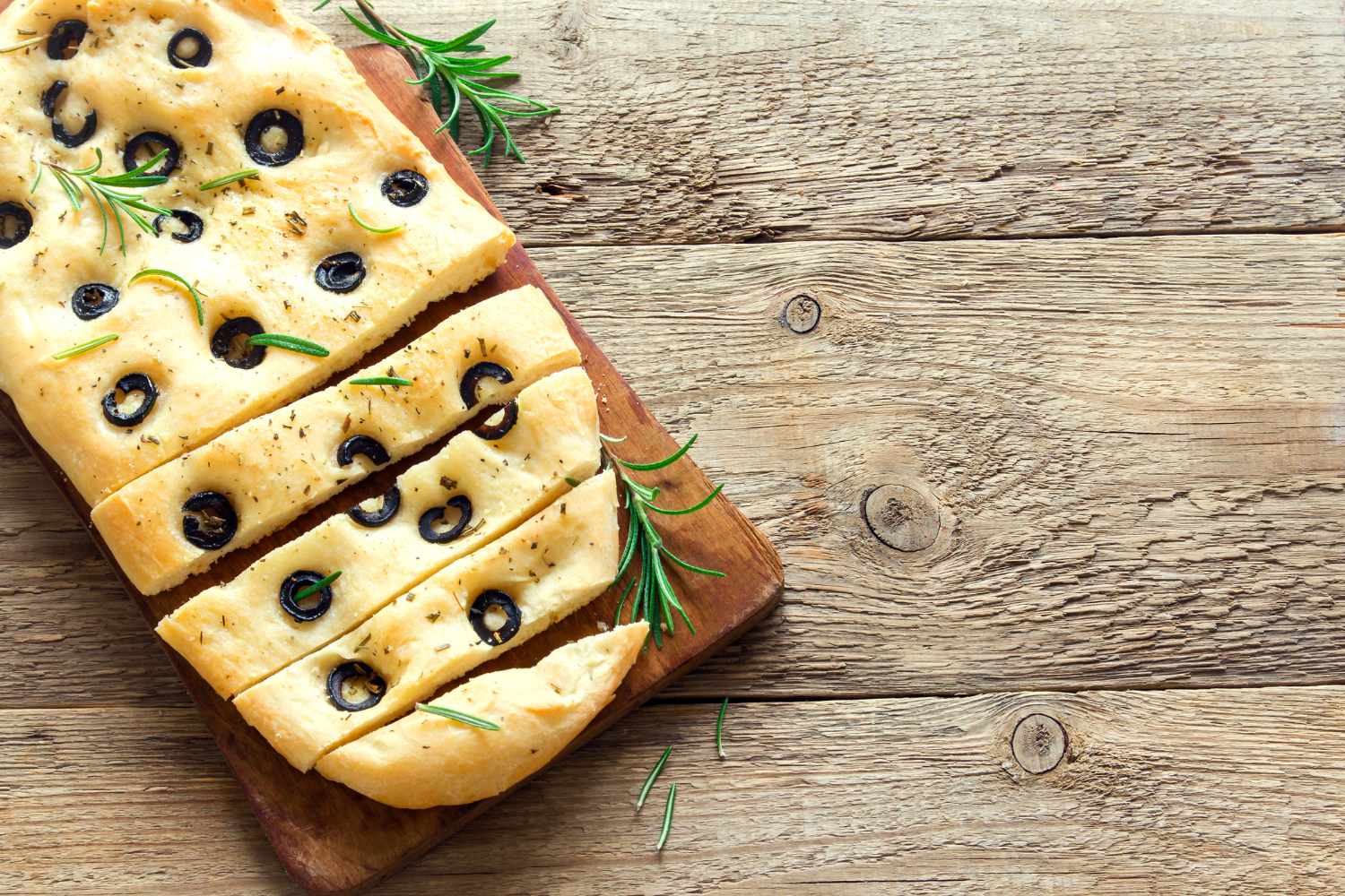 Antipasto: focaccia rustica con rosmarino e olive