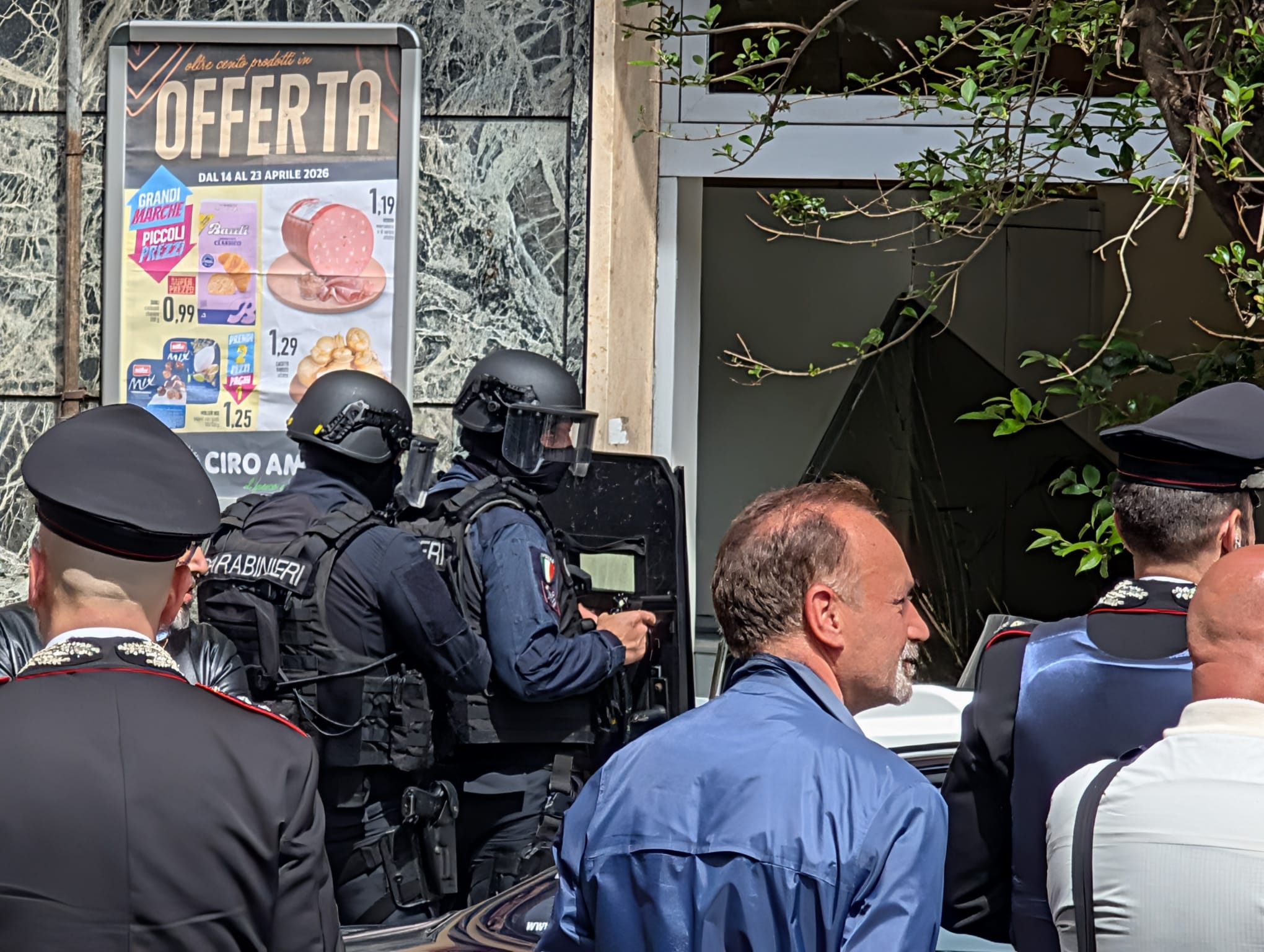 L’immediato intervento dei Carabinieri ha trasformato la piazza in un’area blindata: i militari hanno circondato l’edificio e presidiato ogni via di fuga, inclusi i locali attigui alla banca. Inizialmente sono stati vissuti momenti di estrema tensione per la presenza di clienti e personale dipendente, rimasti bloccati nella struttura. Fortunatamente, dopo fasi concitate di stallo, il gruppo di persone tenuto in ostaggio è stato rilasciato ed è potuto uscire dall’edificio.