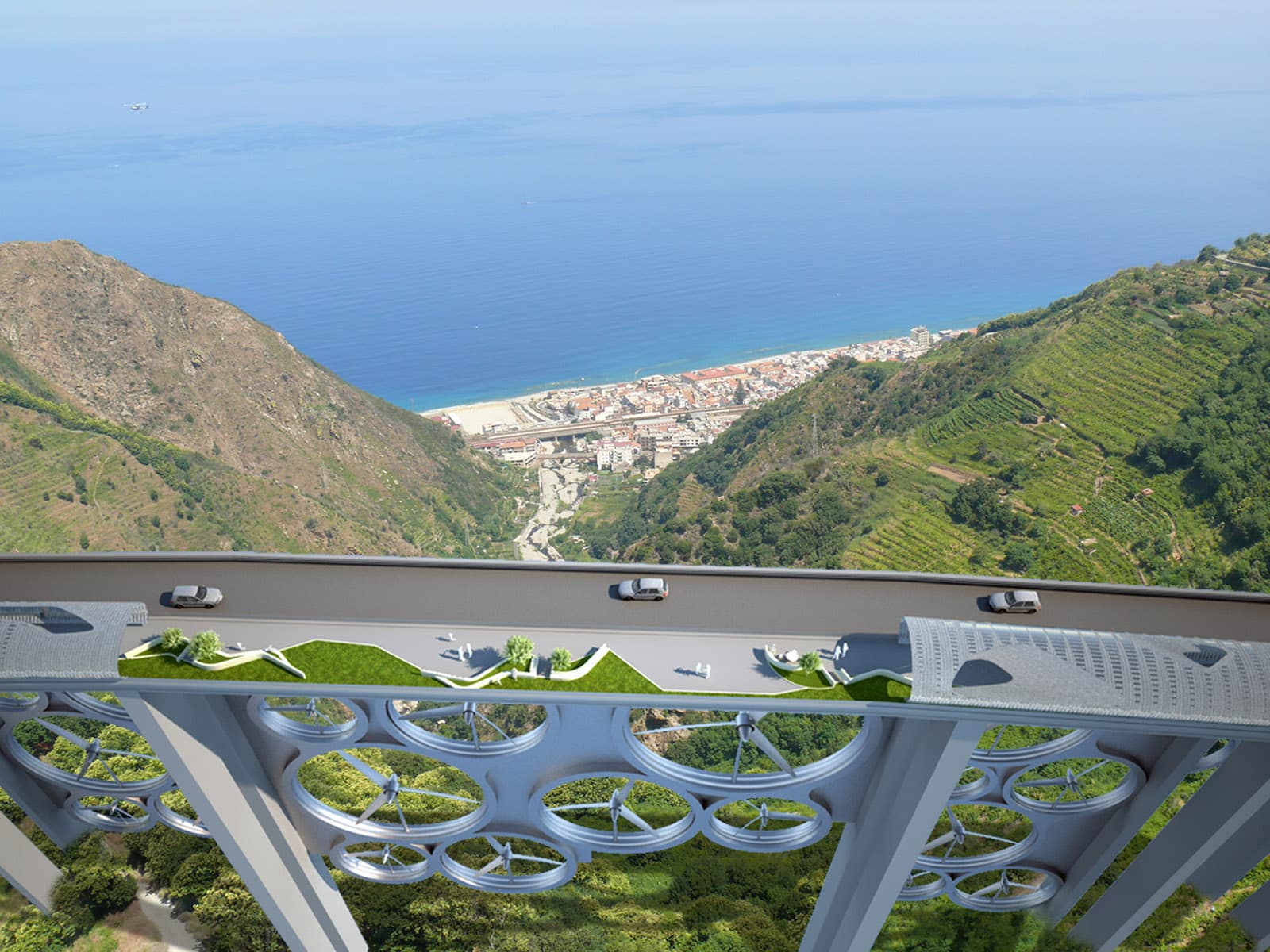 Un progetto che integra solare ed eolico sul viadotto “Costaviola” nel tratto tra Bagnara e Scilla dell’autostrada Salerno-Reggio Calabria.