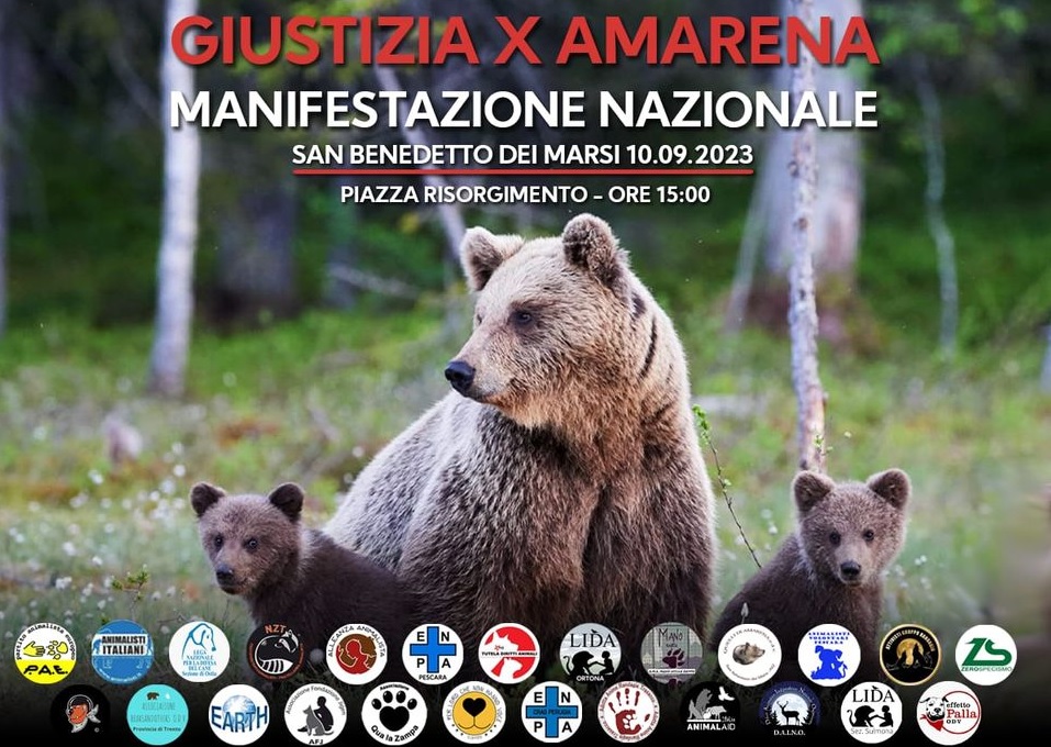 A seguito del cruento gesto compiuto da un cittadino residente in San Benedetto dei Marsi, responsabile di avere ucciso l’orsa Amarena a colpi di fucile, Animalisti Italiani Onlus in sinergia con il Partito Animalista Europeo, con la partecipazione delle associazioni di protezione e di volontariato animalista nazionali, hanno organizzato una manifestazione di condanna dell’efferata uccisione del plantigrado. Gli attivisti dell’Associazione Animalisti Italiani esprimeranno il loro lutto per l’orsa Amarena sventolando le bandiere animaliste con nastro nero, in segno di profondo cordoglio.